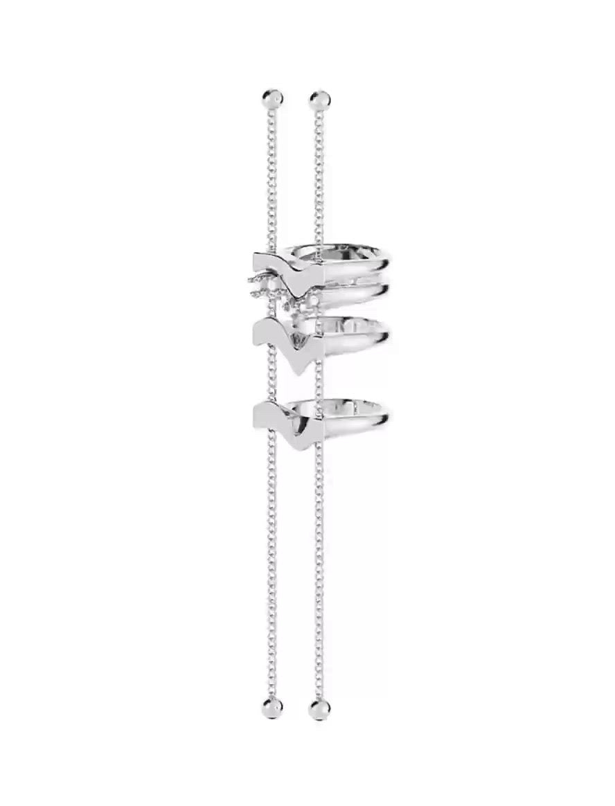 Detail: All eyes will be on you with this flow chain ring delicately paved with white stones. It will bring elegance and modernity to your look while featuring a clean design.This ring is made with high brass and platinum plated layer of 3 microns. It is paved with white zirconia stones.